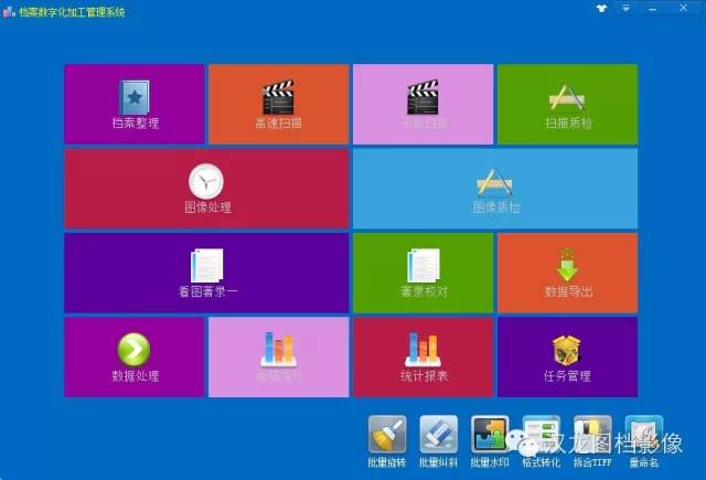 鑒于當今社會信息化公開程度高、檔案資源利用率高的特點,北京市漢龍實業(yè)有限公司結(jié)合專業(yè)數(shù)字化掃描設(shè)備開發(fā)了一套檔案數(shù)字化加工系統(tǒng)。系統(tǒng)由掃描、質(zhì)檢、著錄等環(huán)節(jié)構(gòu)成,充分考慮了檔案資料的特點,引進了齊全的掃描設(shè)備,包括書刊掃描儀、不拆卷掃描儀、平板掃描儀、高速掃描儀、大幅面圖紙掃描儀、縮微膠片掃描儀、照片掃描儀、底片掃描儀等各類掃描設(shè)備,保證各種檔案資料均可實現(xiàn)完善的數(shù)字化。質(zhì)檢環(huán)節(jié)則由漢龍公司自主開發(fā)的數(shù)字化后期處理軟件進行處理。著錄環(huán)節(jié)采用一錄二校方式,結(jié)合計算機比對技術(shù),可以實現(xiàn)著錄內(nèi)容零差錯的目標。