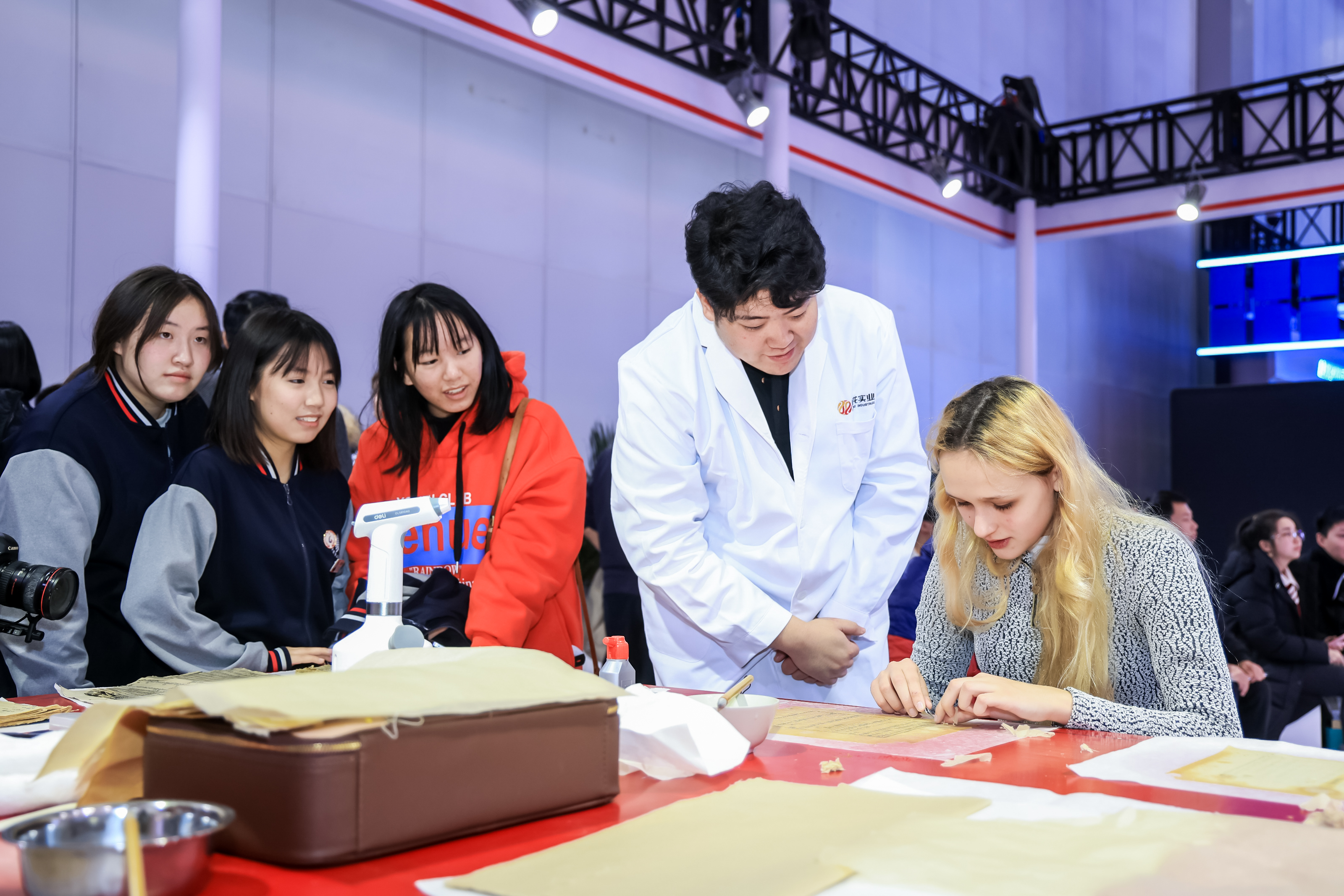 在文獻(xiàn)修復(fù)體驗(yàn)區(qū),觀眾們有幸親眼目睹修復(fù)師憑借專業(yè)素養(yǎng)與匠心精神,運(yùn)用精湛的修復(fù)技術(shù),讓破損文獻(xiàn)重?zé)ㄉ鷻C(jī)、重歸完整。
